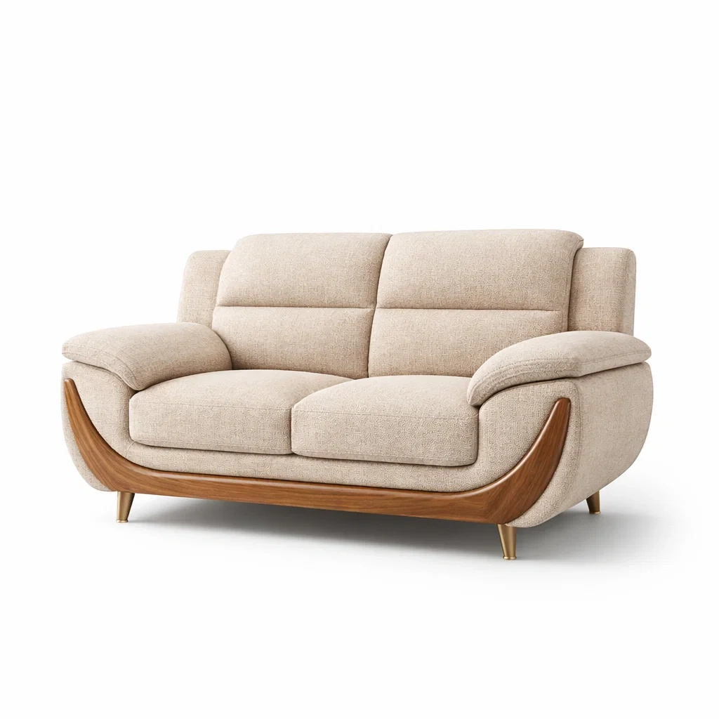 Divano 2 Posti in Tessuto con Gambe in Legno